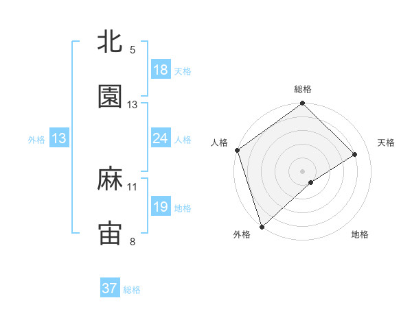 北園 麻宙さんを姓名の画数から五運を鑑定