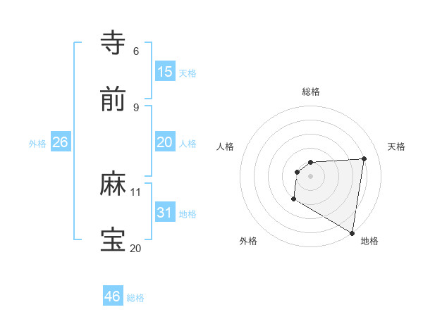 寺前 麻宝さんを姓名の画数から五運を鑑定