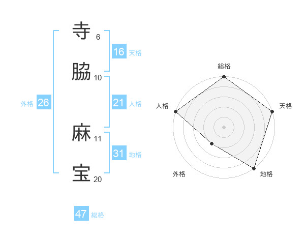 寺脇 麻宝さんを姓名の画数から五運を鑑定