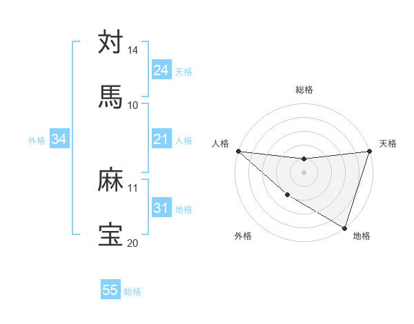 対馬 麻宝さんを姓名の画数から五運を鑑定