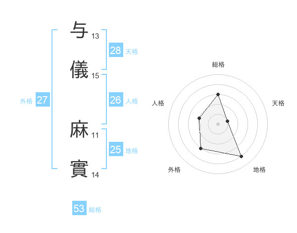 与儀 麻實さんの外格は27画の3点!