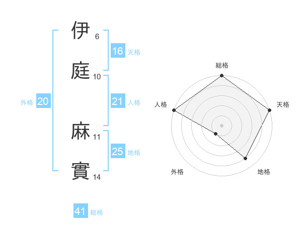 伊庭 麻實さんの天格は16画の5点!