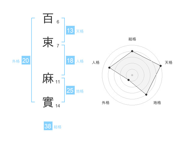 百束 麻實さんの総格は38画の4点!