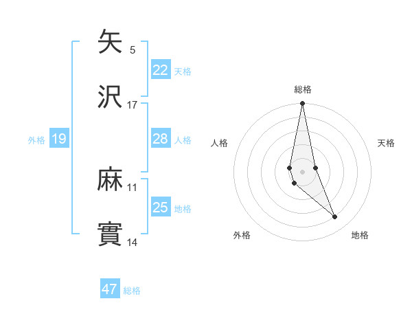 矢沢 麻實さんの総格は47画の5点!