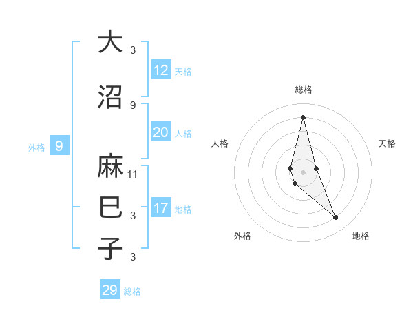 大沼 麻巳子さんの天格は12画の1点!