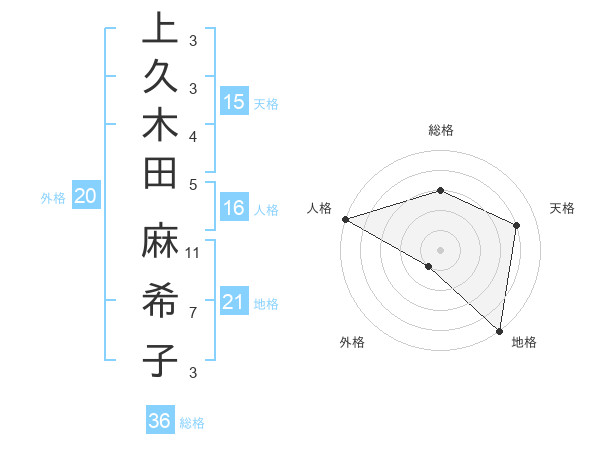 上久木田 麻希子さんを姓名の画数から五運を鑑定