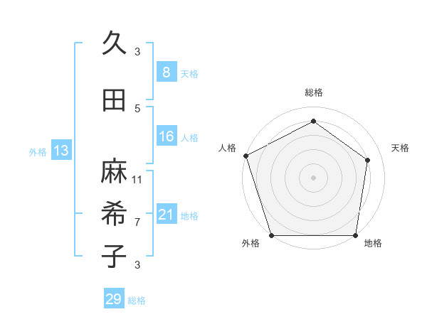 久田 麻希子さんを姓名の画数から五運を鑑定