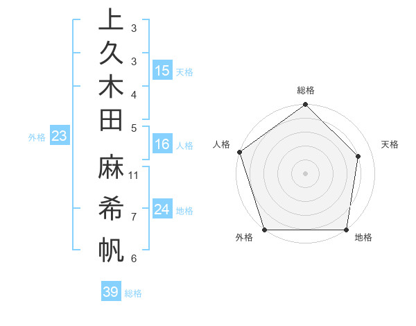 上久木田 麻希帆さんを姓名の画数から五運を鑑定