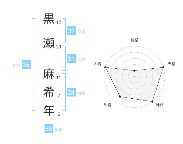 黒瀬 麻希年さんの天格は32画の5点!