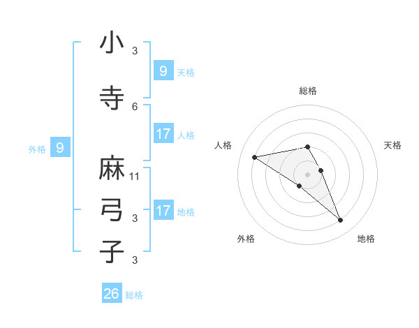 小寺 麻弓子さんを姓名の画数から五運を鑑定