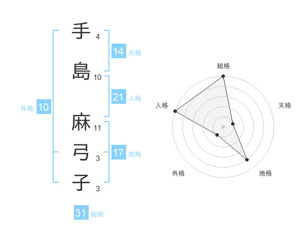 手島 麻弓子さんの総格は31画の5点!