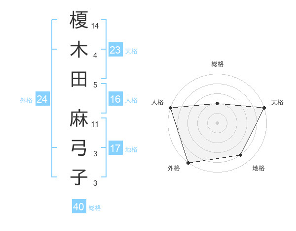 榎木田 麻弓子さんの天格は23画の5点!
