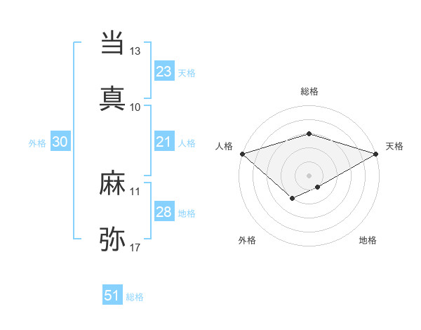 当真 麻弥さんを姓名の画数から五運を鑑定