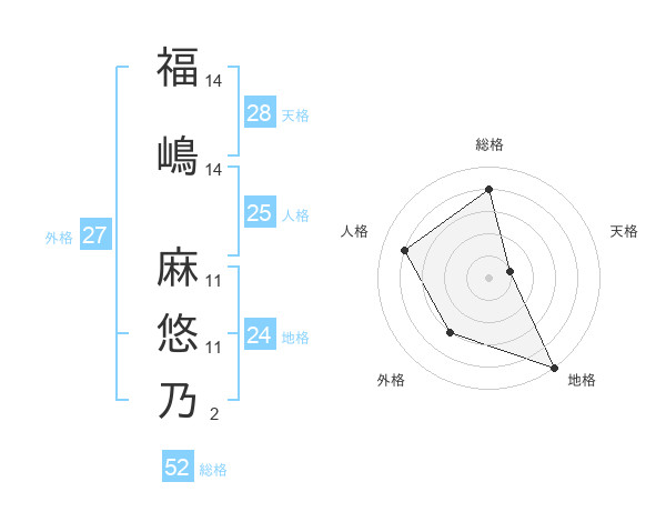 福嶋 麻悠乃さんを姓名の画数から五運を鑑定