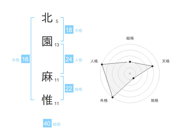 北園 麻惟さんの人格は24画の5点!