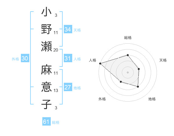 小野瀬 麻意子さんを姓名の画数から五運を鑑定