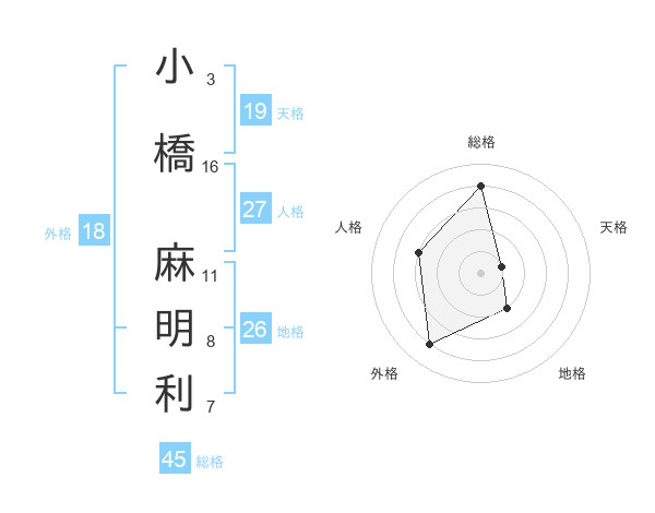 小橋 麻明利さんを姓名の画数から五運を鑑定