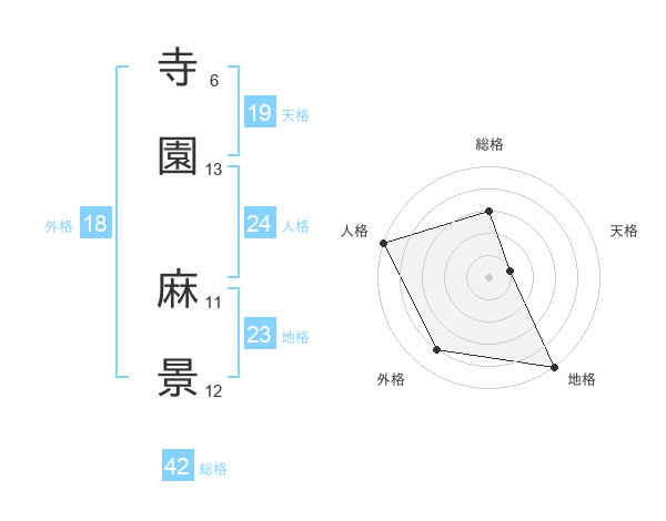 寺園 麻景さんの外格は18画の4点!