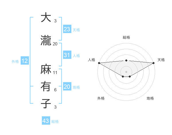 大瀧 麻有子さんを姓名の画数から五運を鑑定
