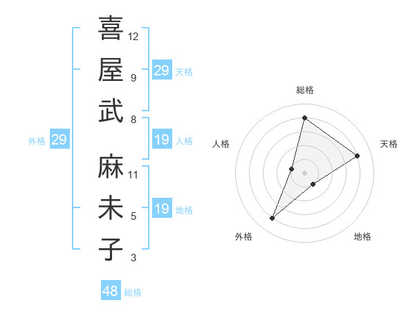 喜屋武 麻未子さんの天格は29画の4点!