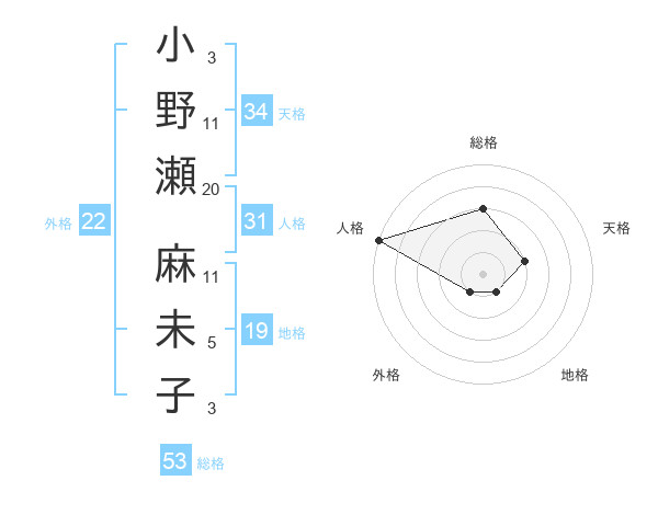 小野瀬 麻未子さんを姓名の画数から五運を鑑定