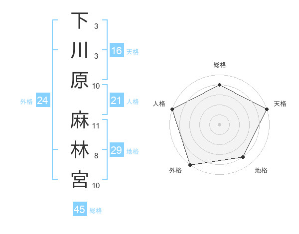 下川原 麻林宮さんを姓名の画数から五運を鑑定