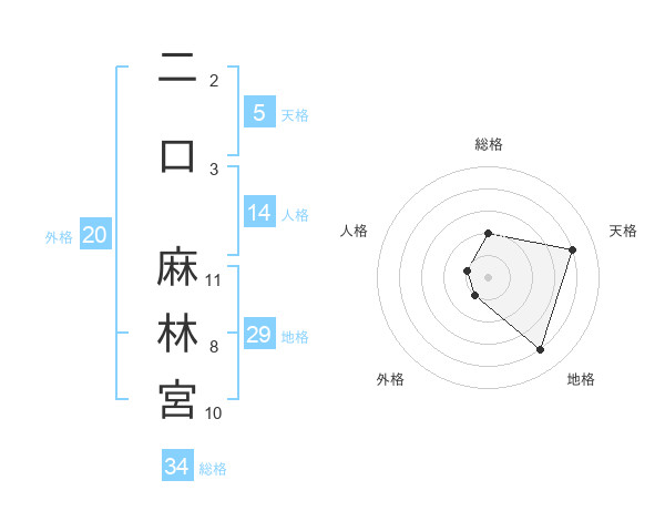 二口 麻林宮さんを姓名の画数から五運を鑑定