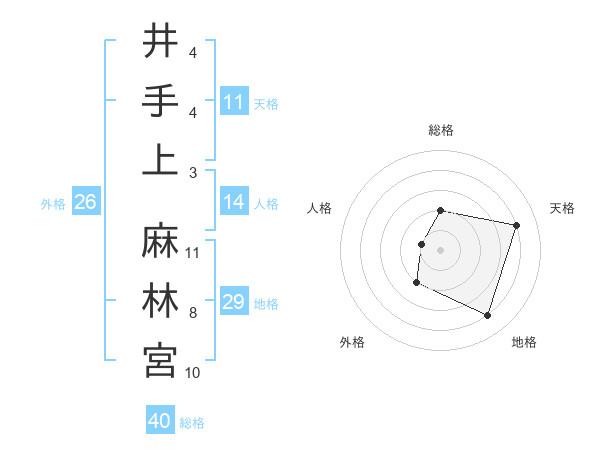 井手上 麻林宮さんを姓名の画数から五運を鑑定