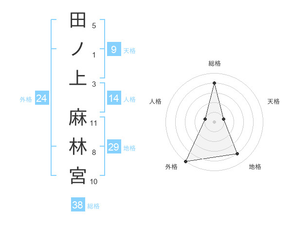 田ノ上 麻林宮さんの総格は38画の4点!