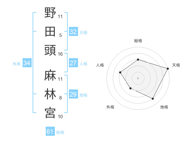 野田頭 麻林宮さんを姓名の画数から五運を鑑定
