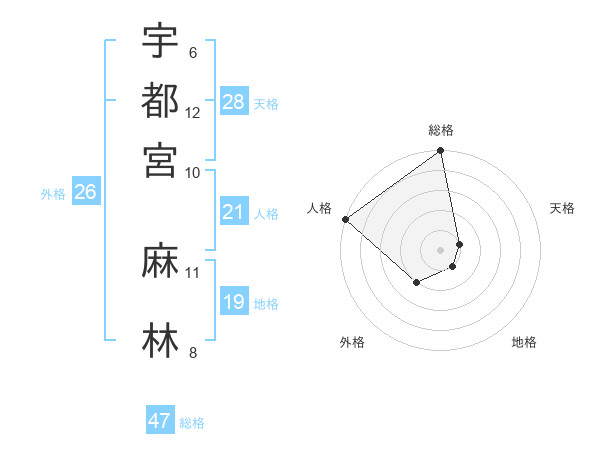 宇都宮 麻林さんの総格は47画の5点!
