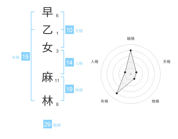 早乙女 麻林さんを姓名の画数から五運を鑑定