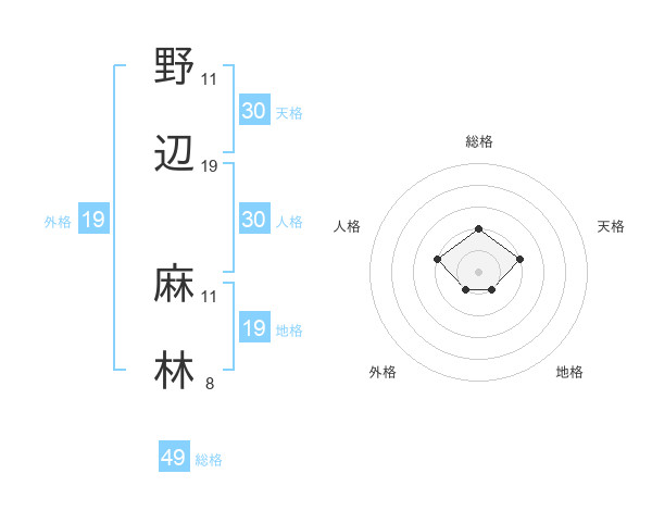 野辺 麻林さんを姓名の画数から五運を鑑定