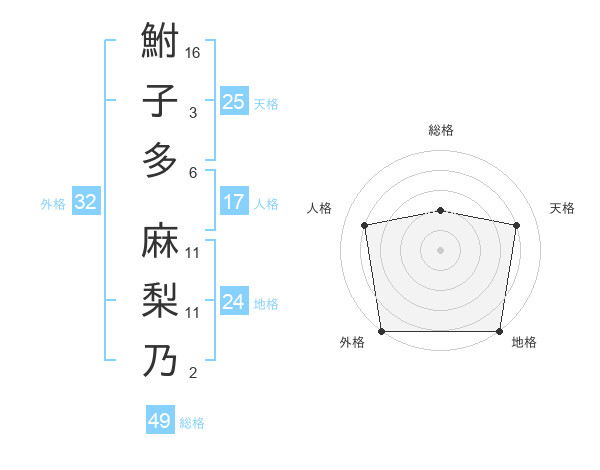 鮒子多 麻梨乃さんの外格は32画の5点!