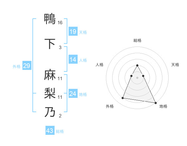 鴨下 麻梨乃さんを姓名の画数から五運を鑑定