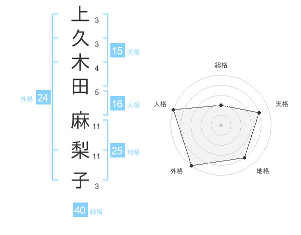 上久木田 麻梨子さんを姓名の画数から五運を鑑定
