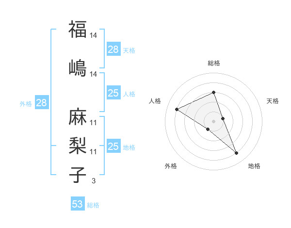 福嶋 麻梨子さんを姓名の画数から五運を鑑定