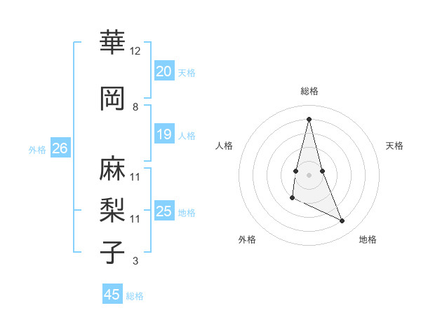 華岡 麻梨子さんの天格は20画の1点!