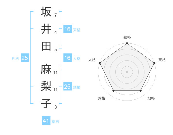 坂井田 麻梨子さんを姓名の画数から五運を鑑定
