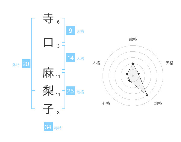 寺口 麻梨子さんの総格は34画の2点!