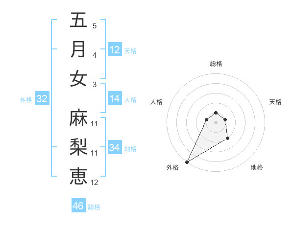 五月女 麻梨恵さんを姓名の画数から五運を鑑定