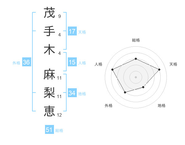 茂手木 麻梨恵さんを姓名の画数から五運を鑑定