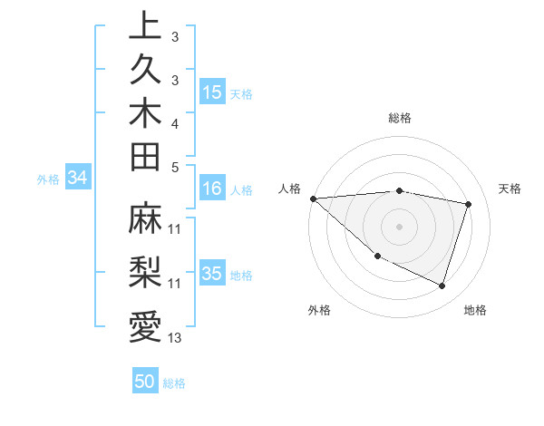 上久木田 麻梨愛さんを姓名の画数から五運を鑑定