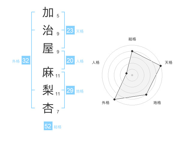 加治屋 麻梨杏さんの総格は52画の4点