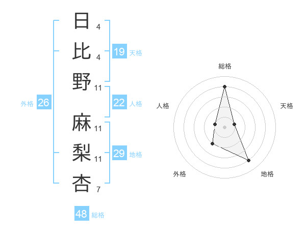 日比野 麻梨杏さんを姓名の画数から五運を鑑定
