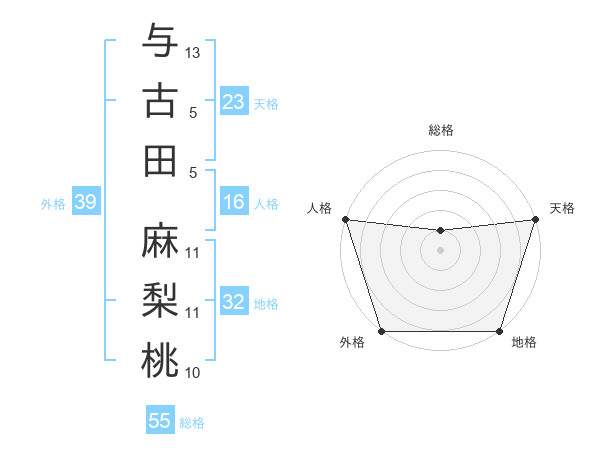 与古田 麻梨桃さんを姓名の画数から五運を鑑定