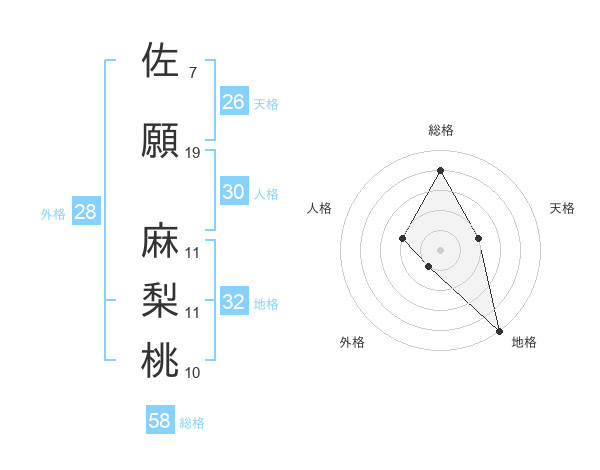 佐願 麻梨桃さんの総格は58画の4点!
