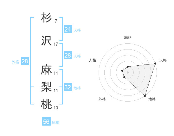 杉沢 麻梨桃さんを姓名の画数から五運を鑑定