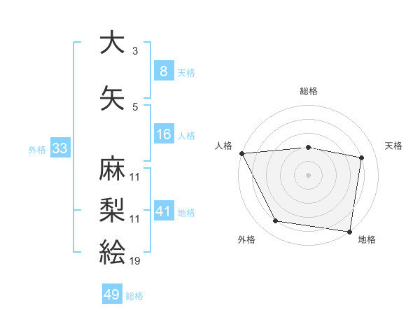 大矢 麻梨絵さんを姓名の画数から五運を鑑定