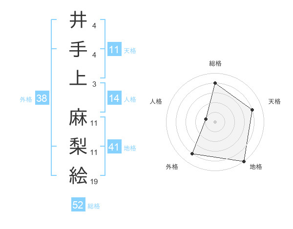井手上 麻梨絵さんを姓名の画数から五運を鑑定